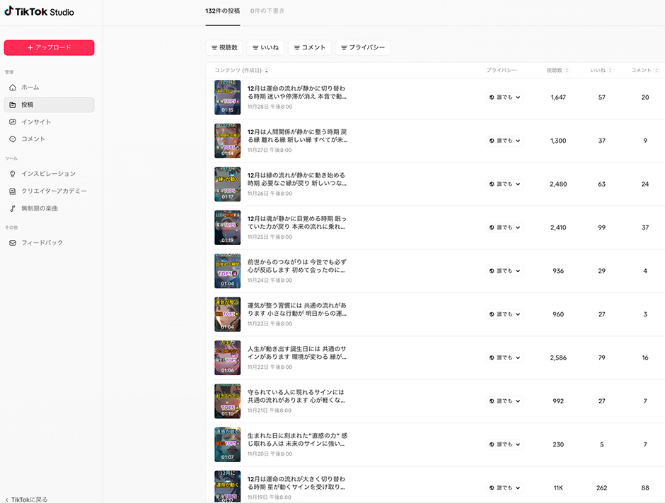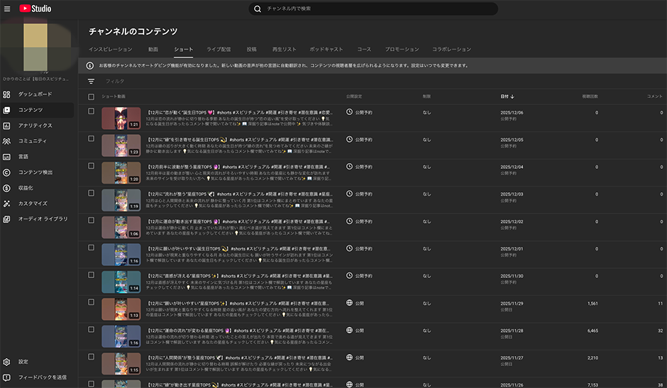 毎日、YouTube short、Instagram リール、TikTokにショート動画をアップ。