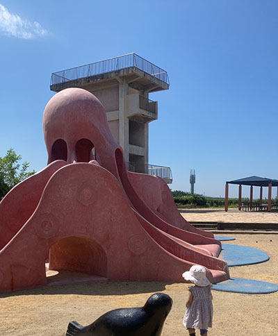 海の生き物の遊具があり、小さな子供でも楽しめます。