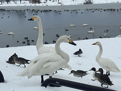 冬季の白鳥シーズンの他に、春の桜、初夏のあやめ、夏のハスなど1年中楽しめます。